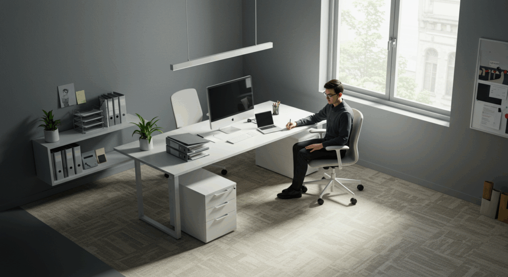 鉄製のデスクフレームに装着すれば、デスクがスッキリ整頓。