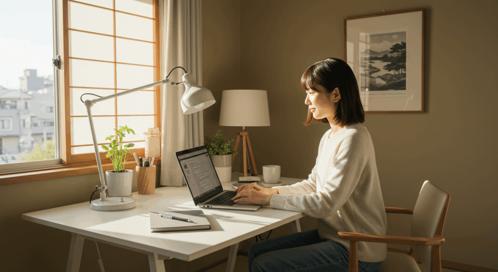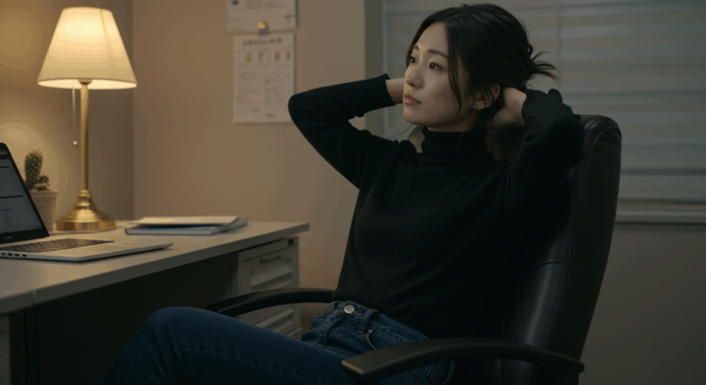 深呼吸と合わせて行うと、気分の切り替えにも役立ちます。
