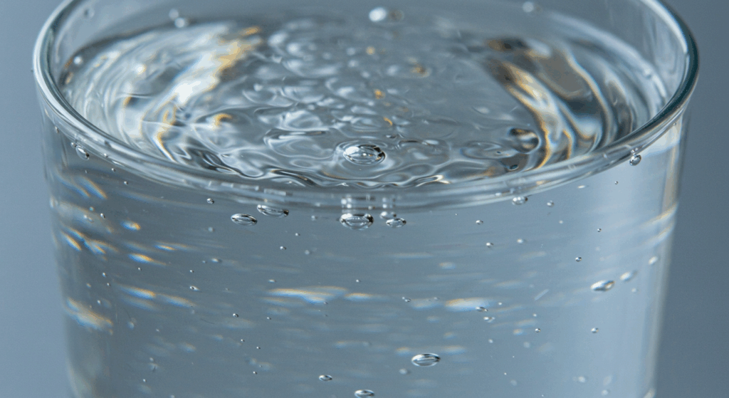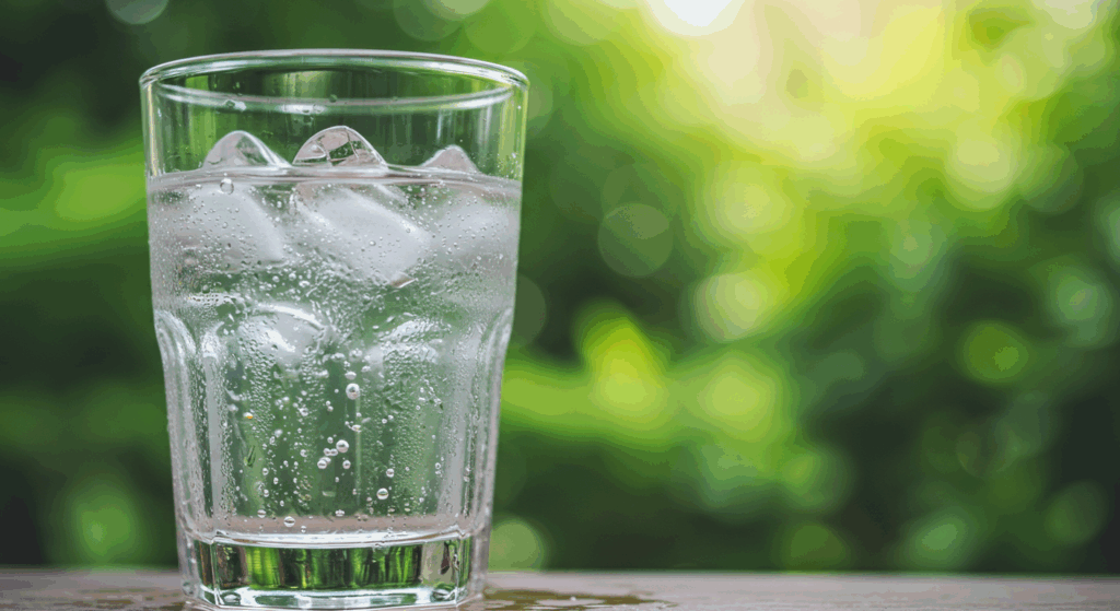 次に、その氷をグラスに入れて水を注ぎ、味を比べてみました。