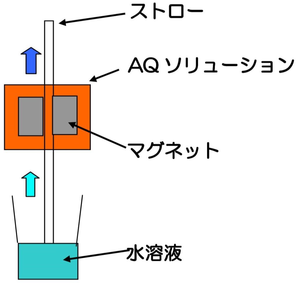 ストローを通して水溶液を飲用する構造となっており、磁気環境下で飲料を楽しみたい方に向けた製品です。